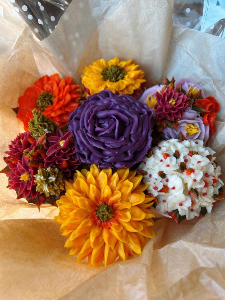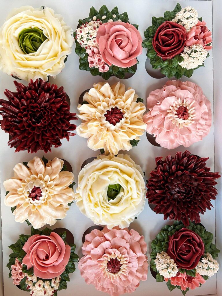 Each of our Specialize Floral Cupcakes is thoughtfully crafted with exquisite care and refined precision These delicate creations transform luscious buttercream into elegant blossoms, capturing the timeless beauty of nature in every swirl and petal. With soft , harmonious colors and intricate artistry, our cupcakes offer not just a treat for palate but a graceful celebration of edible elegance.